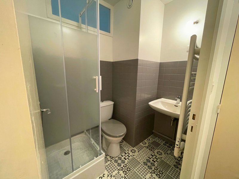 Studio en RDC d'environ 25 m², entrée avec placard, salle d'eau avec wc, pièce de vie ouvrant sur terrasse privative.