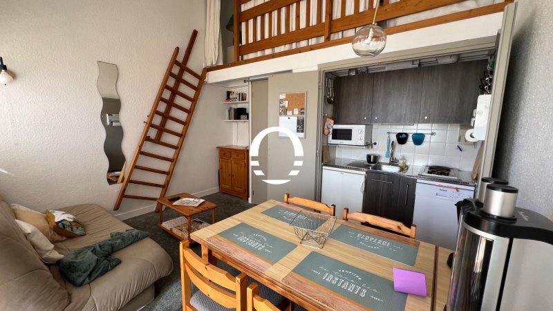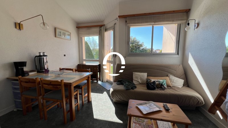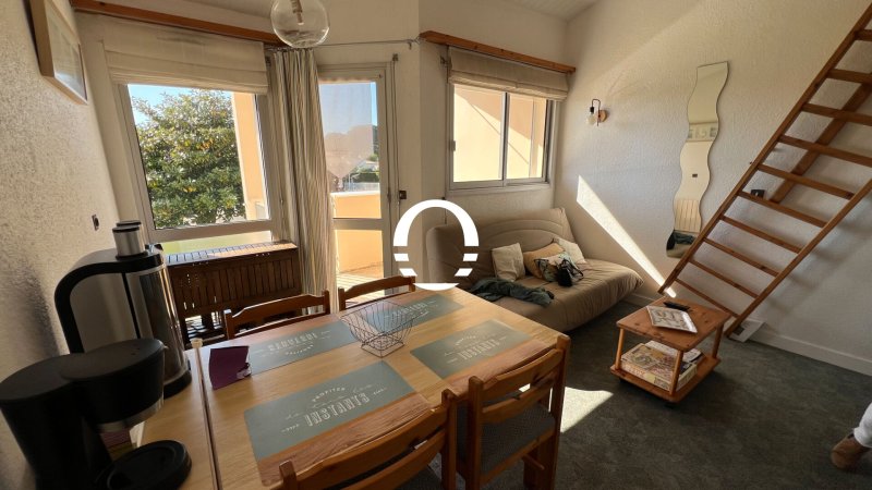 Appartement possiblement vendu meublé : lits superposés, commode, table basse, canape convertible, table + 4 chaises, mezzanine : 2 lits 90 + armoire, fauteuil. Résidence entretenue avec des travaux récents de ravalement, piscine, gouttières.