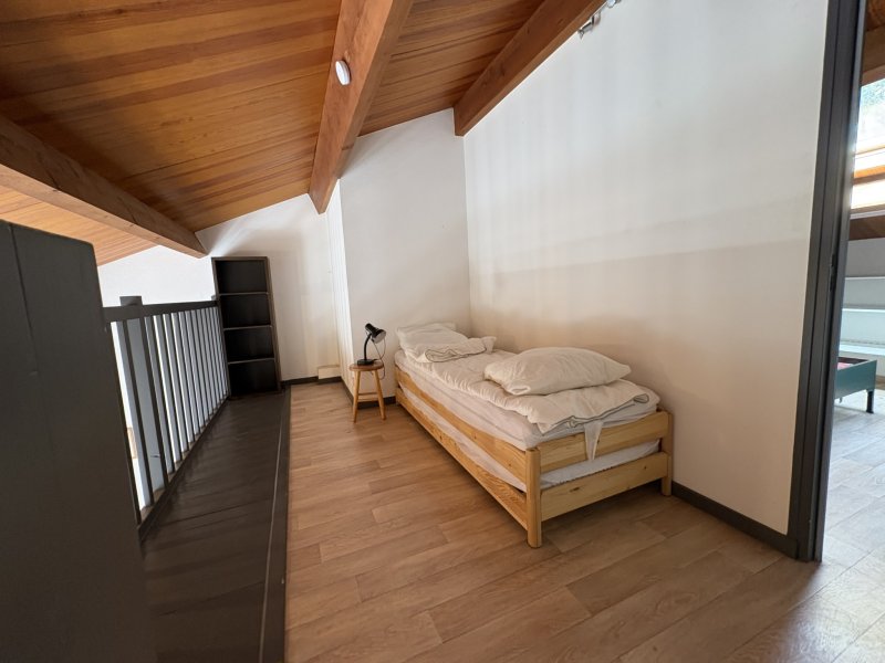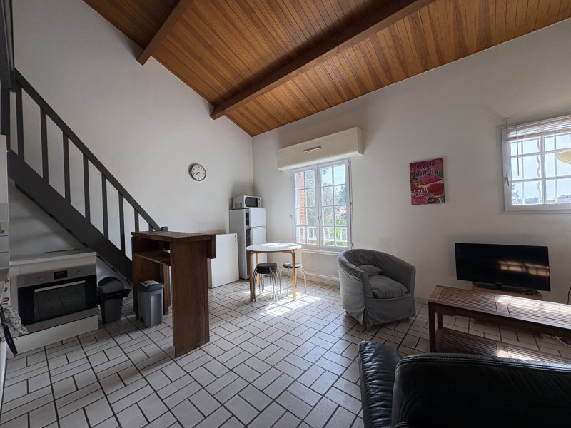 Dans une petite copropriété située dans le bourg de SAINTE MARIE, Très proche de la plage des Sablons et des commerces de proximité, Un appartement comprenant : une entrée, une pièce de vie avec kichenette, Une mezzanine pouvant faire office de chambre, une chambre. Une place de stationnement, une cave. Joli aperçu mer. Copropriété économe. Agence Sainte Marie