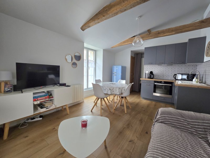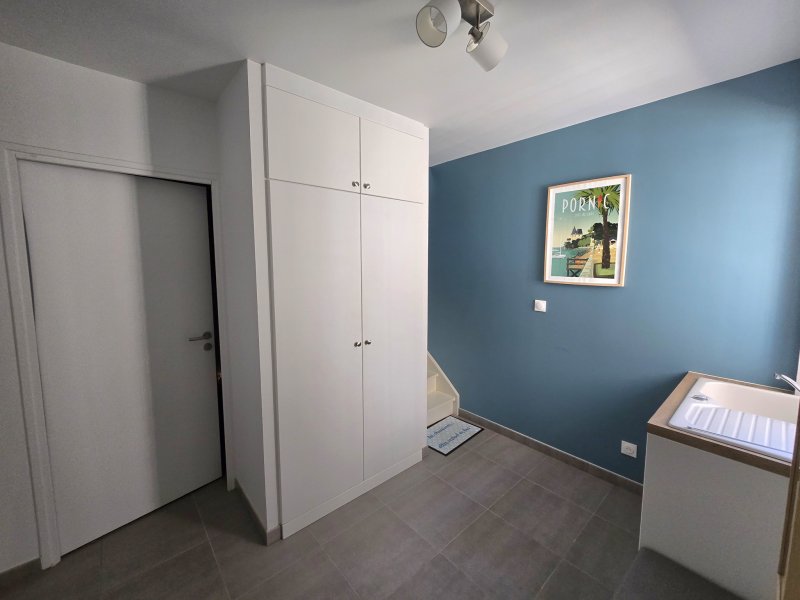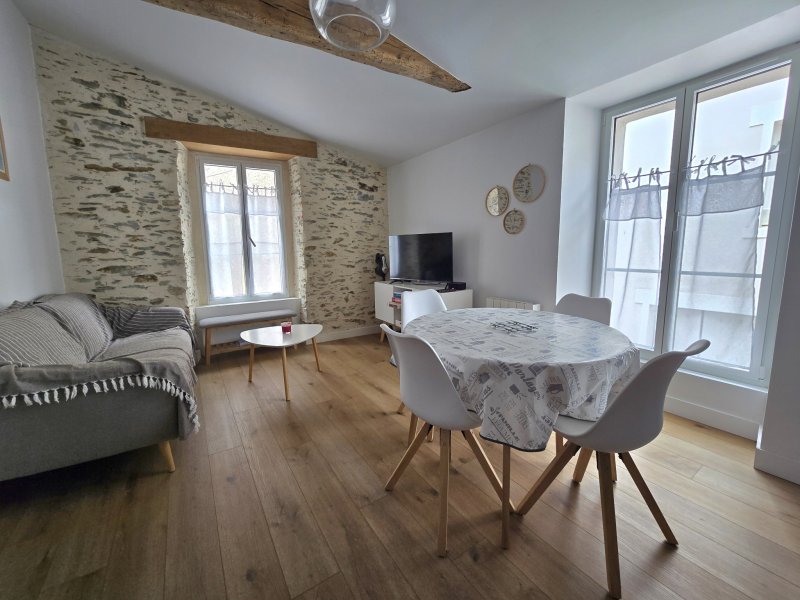 Très bel appartement en duplex de 51,60m2 situé en plein centre-ville de Pornic. Tout se fait à pied: gare, commerces, vieux port, plage Appartement entièrement rénové en 2020 avec des matériaux de qualités. L'appartement dispose d'une grande entrée individuelle en rez-de-chaussée avec placard et buanderie (avec possibilité de mettre des vélos). A l'étage vous trouvez 2 chambres avec pierres apparentes sur une partie de mur, une charmente pièce de vie avec un coin cuisine aménagée et équipée, une salle d'eau, un wc séparé. Appartement idéal pour un pied à terre ou pour de la location saisonnière. Montant estimé des dépenses annuelles d'énergie pour un usage standard entre 1010EUR et 1420EUR, indexées à l'année 2023 (abonnements compris). Consommation énergétique : 247 kWh/m2/an Emission de gaz à effet de serre : 7 CO2/m2/an Le prix indiqué comprend les honoraires à la charge de l'acheteur de 5% TTC, Prix hors honoraires : 275 000 EUR Une copropriété de 2 lots sera créer. Les informations sur les risques auxquels ce bien est exposé sont disponibles sur le site Géorisques : www.georisques.gouv.fr