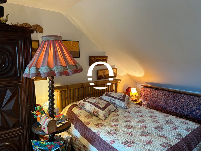 A l'étage : Mezzanine pouvant faire office de bureau distribuant deux grandes chambres avec placards et une grande salle de bains avec WC. Un parking aérien dans une cour sécurisée complète cet ensemble.