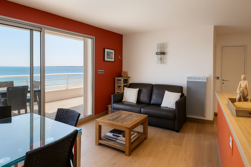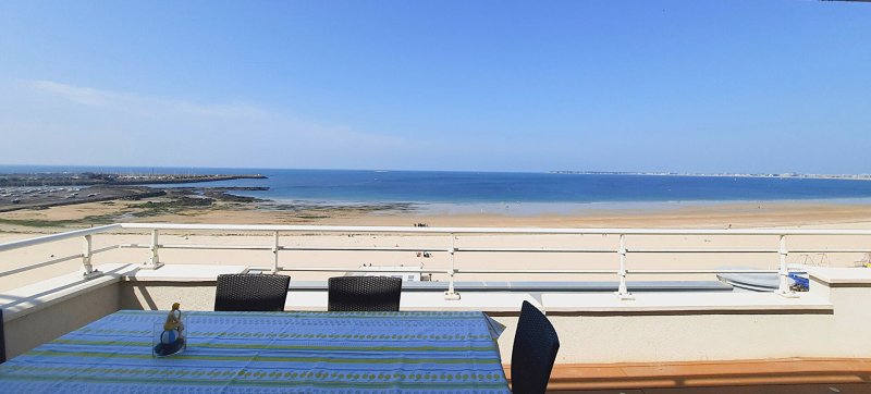 Situé au 6ème et dernier étage d'un immeuble FACE MER, sur la place emblématique des Océanes, cet appartement vous permettra d'accéder à toutes les commodités à pied (gare, commerces, marché, plage). L'appartement est en bon état, vous y posez vos valises. La terrasse de 15m² surplombe le port et la baie et vous offre une vue très ouverte. Il prolonge la pièce de vie et la cuisine aménagée avec des équipements de standing. Une chambre avec salle d'eau et WC séparés complètent le bien. En annexe, une place de parking privative en sous-sol.