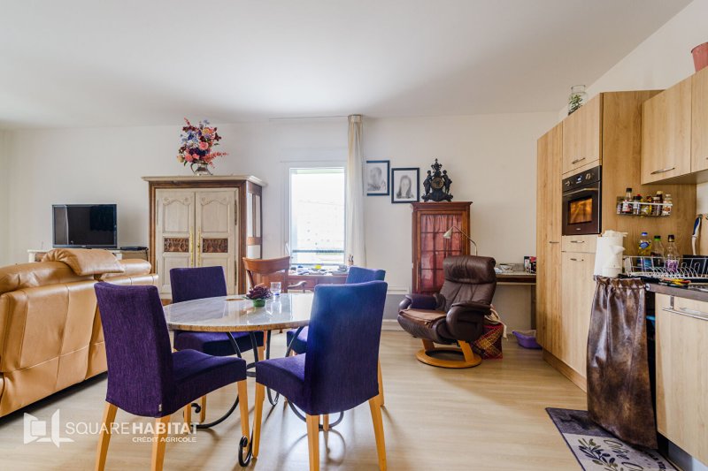 Vous trouverez une entrée, une cuisine aménagée équipée ouverte sur séjour d'environ 44 m², deux chambres, salle d'eau avec wc. Balcon terrasse exposée sud offrant une vue dégagée sur la ville.