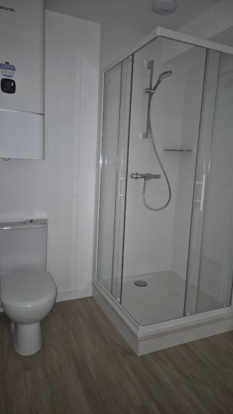 - Salle d'eau contemporaine avec douche, WC et sèche-serviettes