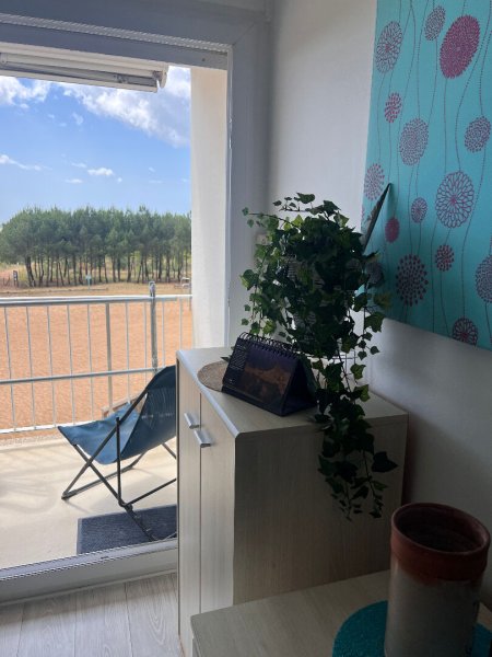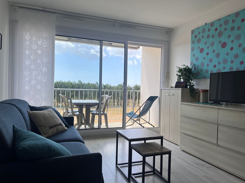 VUE PINÈDE ET APERCU MER pour cet appartement d'environ 31m² avec balcon et place de parking.