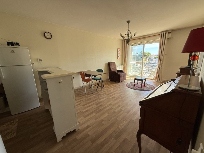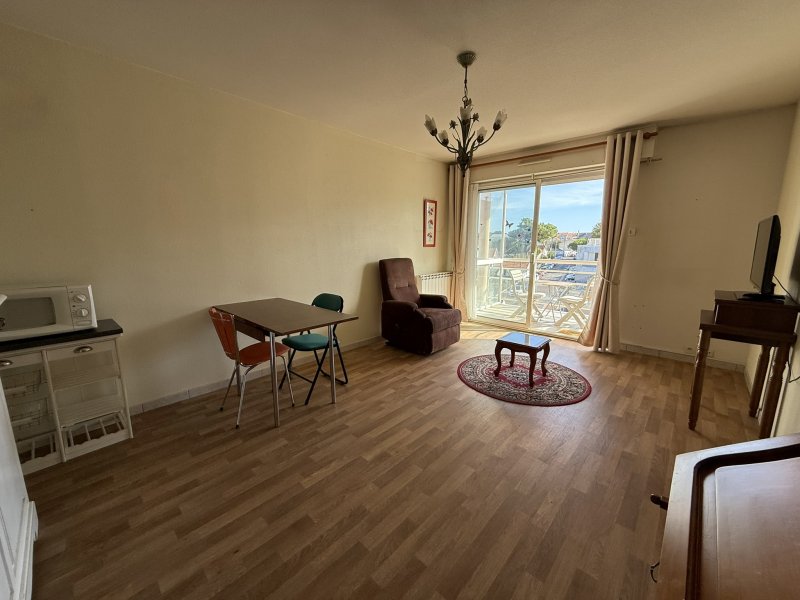 - Appartement 2 pièces 41m2 + Terrasse 6,43m2 + CAVE - PLEIN CENTRE BOURG - 100m de la PLAGE - Emplacement de qualité ! L'agence VIMMO (Guillaume DESEUVRE - O6 42 71 18 26) vous propose cet appartement 2 pièces de 41m2, dans un immeuble en copropriété édifié en 2002, à 100m de la Plage des Pins, commerces à pied ainsi que les transports en commun. Logement situé au 2ème étage sur 3, AVEC ASCENSEUR, équipé d'une agréable terrasse (6,43m2) et une CAVE en sous-sol, disposant de : - une entrée avec placard aménagé, desservant une pièce de vie (25,12m2) avec une cuisine ouverte aménagée-équipée (plaque de cuisson, hotte, réfrigérateur-congélateur), le tout donnant accès sur la terrasse (6,43m2) avec vue dégagée ; - une chambre (10,52m2) avec placard aménagé, une salle d'eau (3,53m2) (1 vasque-rangements, douche, sèche-serviettes) et un W.C indépendant (1,77m2). > Chauffage électrique (radiateurs). -- Huisseries PVC double vitrage / Volets roulants motorisés / Visiophone / Taxe foncière : 625EUR. A propos de la copropriété : - Charges prévisionnelles : 200EUR/trimestre soit 800EUR/an (charges communes générales, entretien parties communes & espaces verts / ascenseur) Contactez-moi au O6 42 71 18 26 pour plus de renseignements et programmer une éventuelle visite. Guillaume DESEUVRE ; Agence VIMMO, Agent Commercial (adhérent FNAIM) à Vertou, Professionnel inscrit au RSAC Nantes N2017AC00369