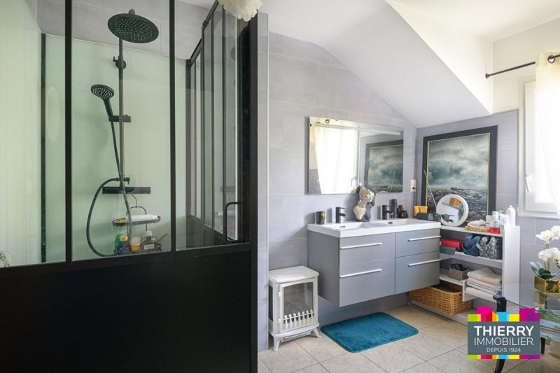 Ce bien est composé d'une entrée inondée de lumière avec un mezzanine, un beau séjour très lumineux de 30 m² avec un poêle, une belle salle à manger conviviale donnant sur une cuisine indépendante aménagée et équipée, une buanderie ainsi qu'une partie nuit avec une chambre et deux suites parentales dont une avec vue mer.