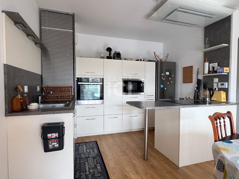 Confort , Luminosité : Une vaste pièce de vie baignée de lumière avec une cuisine ouverte, aménagée et entièrement équipée.