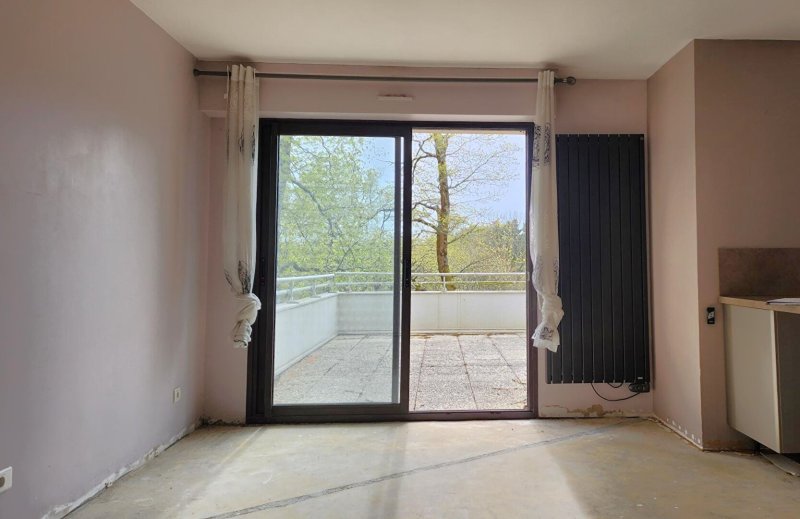 Il se compose d'une entrée donnant sur une pièce de vie avec cuisine ouverte. Dans le prolongement la grande terrasse d'environ 36m² bénéficie d'une belle vue dégagée dans les arbres, surplombant la Chézine.