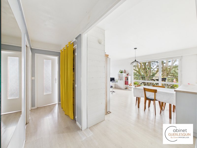 Le cabinet Guerlesquin & Associés vous propose à la vente un appartement T3 de 70.93 m2, situé quartier de la Garotterie à Saint-Herblain. Au sein d'une copropriété agréable et bien entretenue, dans un cadre verdoyant, découvrez cet appartement situé au 2ème étage sans ascenseur. La résidence bénéficie notamment d'un parc arboré au coeur de la copropriété ainsi que de la présence d'un gardien. L'appartement se compose d'une entrée desservant une pièce de vie lumineuse avec cuisine ouverte aménagée et équipée, prolongée par une loggia et un balcon. L'espace nuit comprend deux chambres, une salle de bains ainsi que des WC séparés. En annexes, vous bénéficierez également d'une cave et d'un emplacement de stationnement extérieur. Les points forts de ce bien : La présence d'une cave et d'un emplacement de stationnement, La présence d'un gardien, Un parc privatif au sein de la copropriété, La surface de l'appartement, A noter : Chauffage collectif gaz, Taxe foncière : 1 223EUR Charges annuelles : 1 570EUR, Visite virtuelle disponible sur demande. N'hésitez pas à nous contacter pour plus d'informations au 02.40.48.99.54.