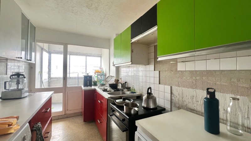 Au 4ème et dernier étage sans ascenseur, appartement de Type 4 comprenant: entrée, cuisine aménagée et équipée, séjour lumineux de 30m² donnant sur balcon, 3 chambres, salle de bain et WC séparés.