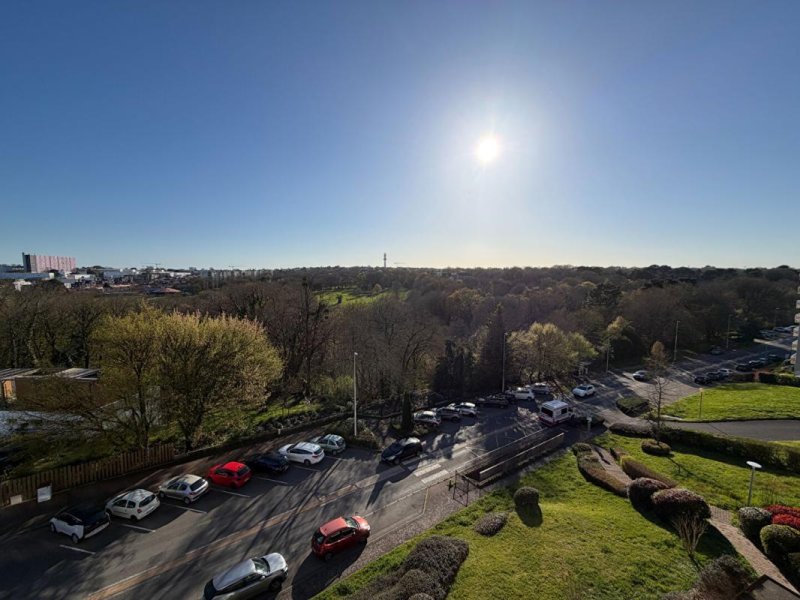Le balcon exposé Sud permet de profiter d'une belle luminosité et d'une vue dégagée sur la cim des arbres du parc de la Chézine, véritable poumon vert du secteur.