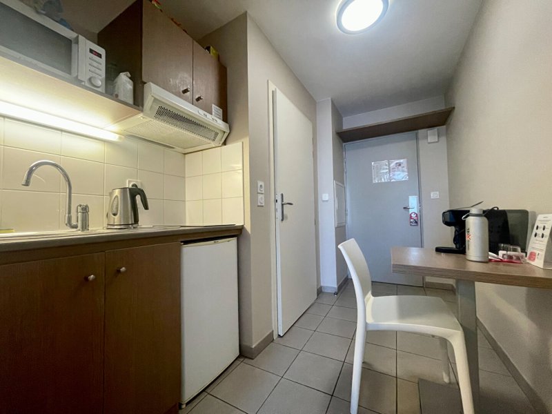 Il se compose d'une kitchenette aménagée et équipée, une salle d'eau, une chambre avec placard et bureau.