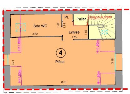 Rénovation intégrale à prévoir pour cet appartement facilement agençable en T2 dont la surface au sol est de 38 m².