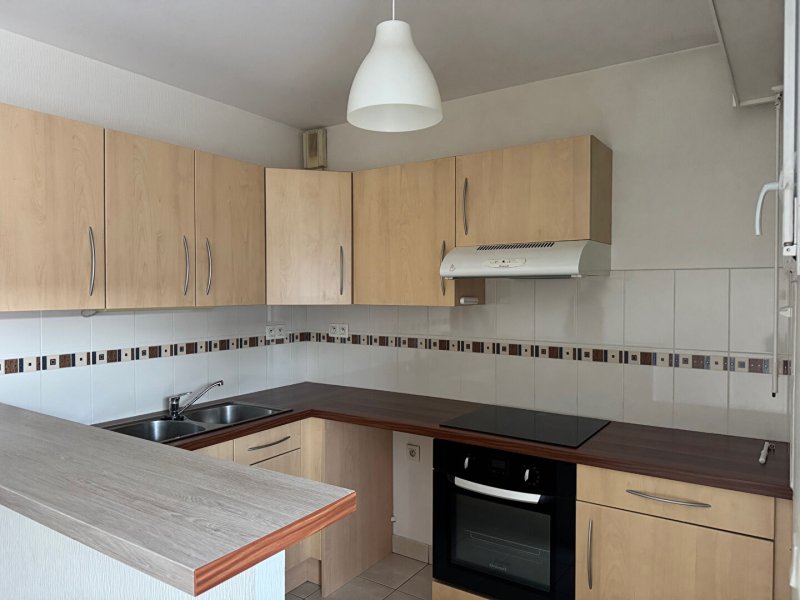 La cuisine ouverte, aménagée, s'intègre harmonieusement à l'espace de vie.