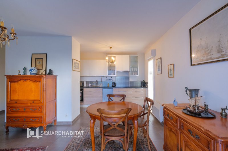 Espace de vie lumineux : Grande pièce à vivre avec cuisine ouverte, donnant sur une terrasse côté jardin.