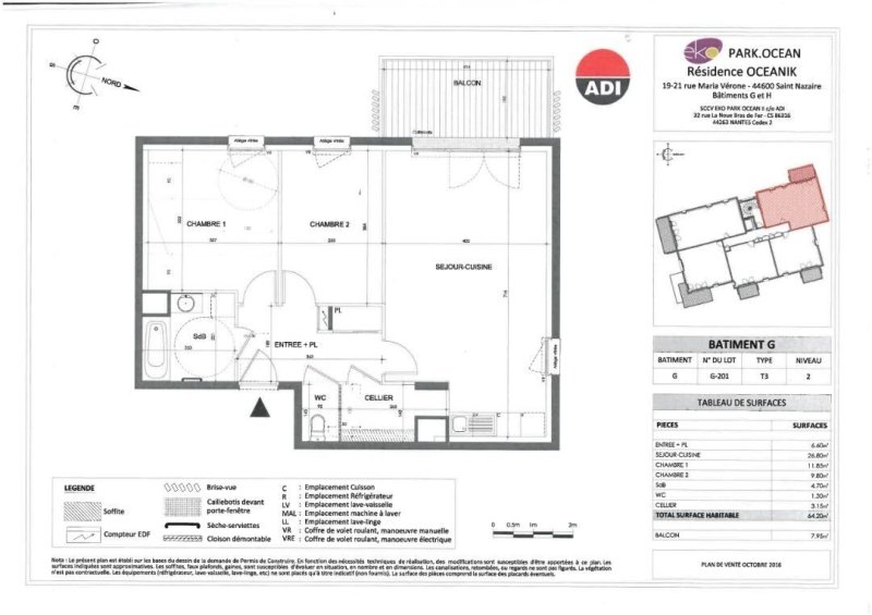 Ce Type 3, niché au 2ème étage d'une résidence construite en 2018, offre des prestations modernes. Il s'ouvre sur une entrée spacieuse menant à un séjour lumineux exposé OUEST, avec une cuisine aménagée et équipée ouverte, prolongée par un balcon de 8m². L'espace nuit comprend deux chambres confortables, une salle de bains, des toilettes indépendantes et un cellier.