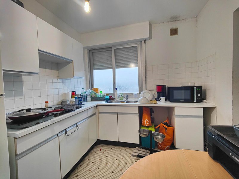 Appartement de type T3, situé au 3ème étage d'une copropriété sécurisée avec ascenseur, actuellement loué, dans le centre ville de Saint-Nazaire, entre la gare et le marché, proche du Paquebot, offrant :