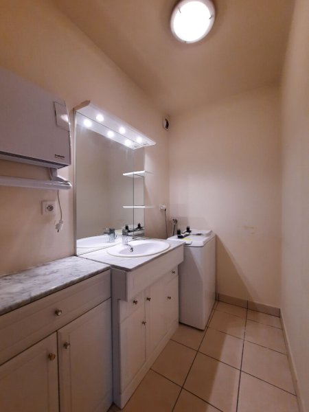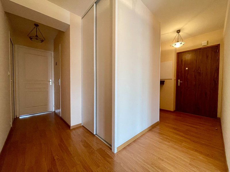L'appartement se compose d'une entrée avec de nombreux rangements, d'une buanderie, d'une cuisine ouverte sur un séjour lumineux prolongé par un balcon, de deux chambres, d'une salle de bains et de WC séparés.