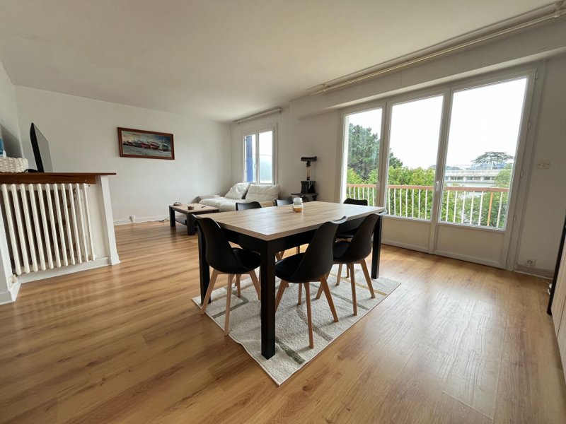 Dans une copropriété située sur le FRONT DE MER à Saint-Nazaire, cet appartement 3 pièces de 77m² dispose d'une belle pièce de vie lumineuse orientée SUD donnant sur un grand balcon (avec petite vue mer), une cuisine indépendante avec loggia, deux chambres confortables, d'une salle d'eau refaite récemment, de WC indépendants.