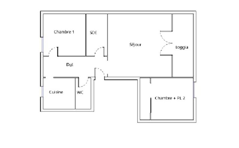 Entrée, séjour exposé Sud donnant sur une loggia fermée, cuisine séparée, salle d'eau et deux chambres.