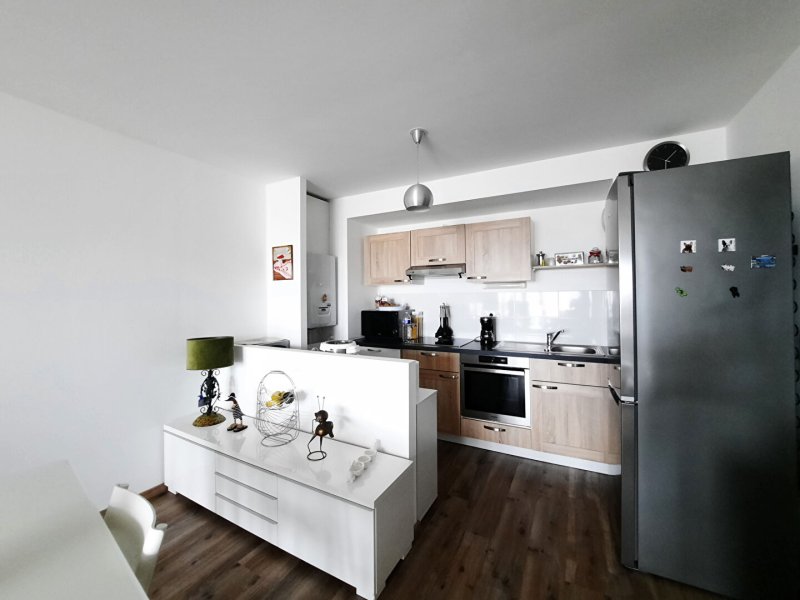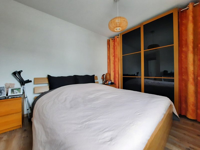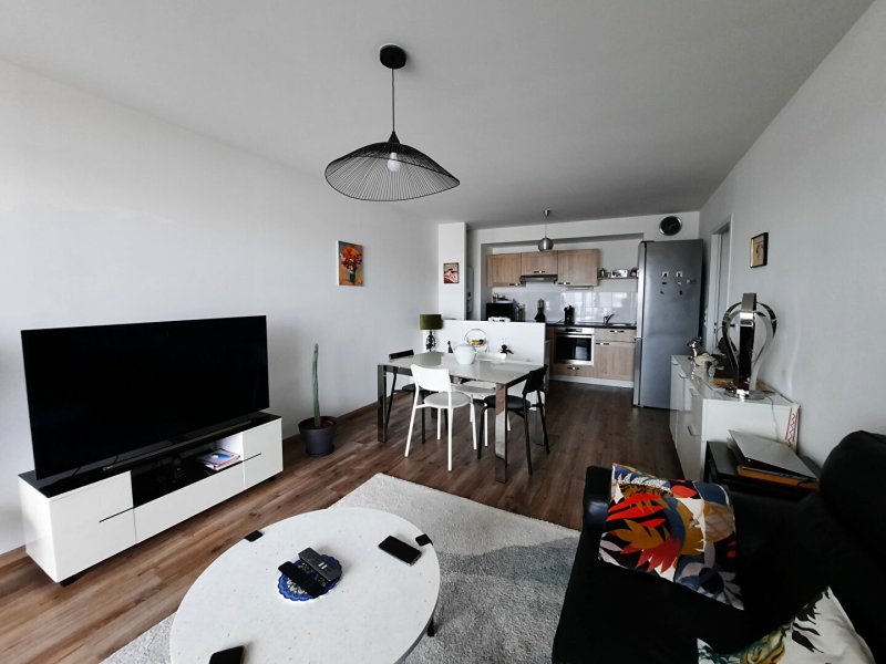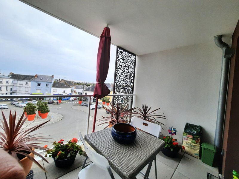 Il se compose d'une entrée, d'un séjour-cuisine avec accès au balcon exposé Sud-ouest, deux chambres et une salle d'eau avec WC séparés.