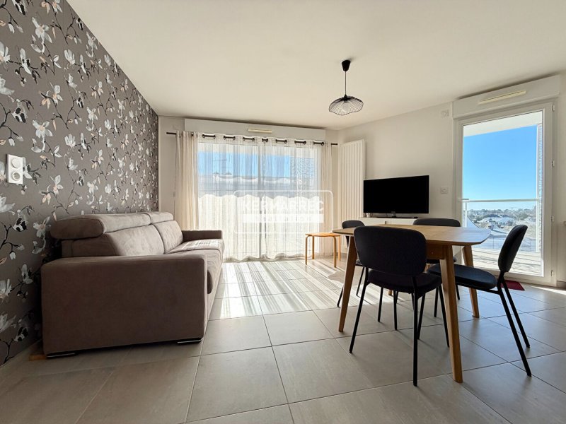 Il se compose d'une entrée avec placard, d'un séjour avec cuisine aménagée et équipée, donnant accès à une grande terrasse exposée sud-ouest, de deux chambres avec placard, d'une salle d'eau, de WC séparés ainsi que d'une buanderie.
