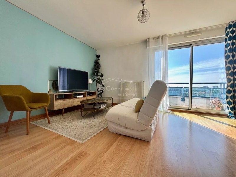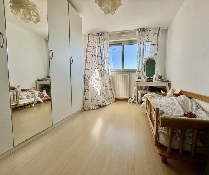 SAINT-NAZAIRE plaisance : appartement au 9e étage avec vue sur la baie comprenant : Entrée, salon/séjour avec balcon et store banne, deux chambres avec placard, cuisine équipée (plaque au gaz, four), salle de douche, toilettes séparées.