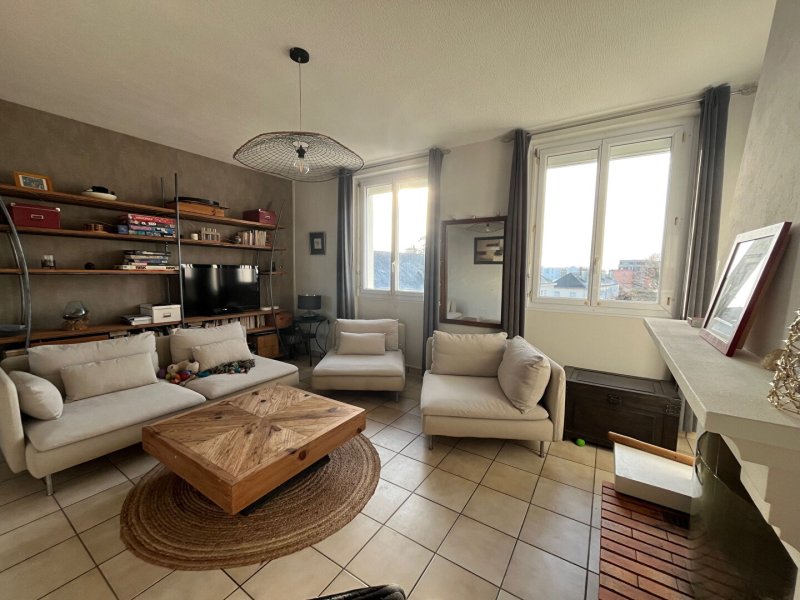 Appartement situé au 3ème étage comprenant un séjour, une cuisine aménagée équipée donnant sur une loggia, un WC, un grand salon-séjour très lumineux exposé Sud avec cheminée foyer ouvert, un dégagement dessert 3 chambres et une salle de bains. Une cave et une chaufferie complètent ce bien.