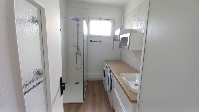 Il se compose d'un salon-séjour , d'une cuisine aménagée et équipée, de trois chambres, dont une suite parentale avec sa salle d'eau privative, ainsi qu'une salle d'eau indépendante.