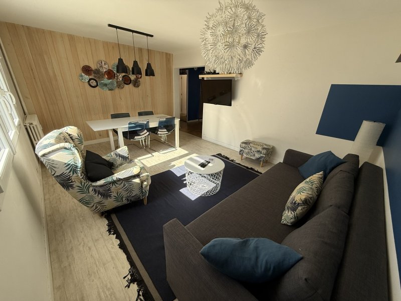 Appartement (4 pièces) de 72,10m2 avec 1 place de parking privative et Cave (7,40m2) - EXCLUSIVITE - Excellent emplacement ! Secteur LA MARTELLIÈRE (rue de la Greneraie) L'agence Vimmo (Guillaume DESEUVRE - O642711826) vous propose un appartement rénové en 2018 dans une résidence en copropriété disposant d'un espace vert. Proche de toutes les commodités à pied, transports en commun (Busway ligne C4 / Chronobus C9 / Bus lignes 27, 28 & 162) pour accéder au centre-ville de Nantes en quelques minutes seulement. Cet appartement est composé de : -- Une entrée (7,84m2) avec placard, une pièce de vie (18,14m2) donnant sur l'espace vert de la résidence, une cuisine semi-ouverte (année 2018, cuisiniste Mobalpa) (7,44m2) aménagée-équipée (évier, plaque de cuisson, hotte) et une arrière-cuisine (1,50m2). - un dégagement desservant 3 chambres (9,30m2, 10,86m2 & 11,20m2) dont une avec placard aménagé, une salle d'eau (4,85m2) (1 vasque-rangements, douche) et un W.C indépendant (0,97m2). -- En annexe : une place de parking extérieure privative et une cave (7,40m2) > Huisseries PVC double vitrage / Volets roulants motorisés / Connexion fibre optique / Ravalement des façades de l'immeuble (2018). > Chauffage gaz de ville (radiateurs, chaudière commune). A propos de la copropriété : - Charges prévisionnelles : 644,75EUR/trimestre soit 2.579EUR/an (comprenant : consommations chauffage, eau froide, entretien parties communes & espaces verts) Contactez-moi au O6 42 71 18 26 pour plus de renseignements et programmer une éventuelle visite. Guillaume DESEUVRE ; Agence VIMMO, Agent Commercial (adhérent FNAIM) à Vertou, Professionnel inscrit au RSAC Nantes N2017AC00369