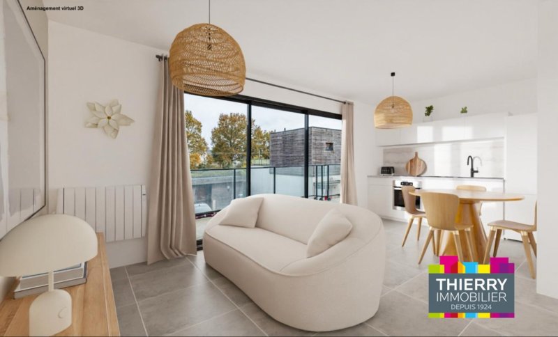 THOUARÉ-SUR-LOIRE - Situé à seulement 400 mètres de l'église, cet agréable appartement de type 3 de 65 m² se trouve au 1er étage d'une résidence de 2011 bien entretenue. Il comprend une entrée avec placard, une pièce de vie avec une cuisine aménagée ouverte, donnant sur un balcon exposé Sud-Est. L'appartement dispose également de deux chambres, d'une salle de bains et de WC séparés.