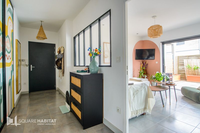 Ce bel appartement T3 en rez-de-chaussée, à la décoration moderne et soignée, offre une grande entrée avec placard, une vaste pièce de vie lumineuse avec cuisine ouverte aménagée et équipée, deux chambres confortables, une salle de bains et des WC indépendants.
