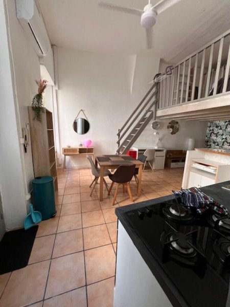 - Une cuisine aménagée ouverte sur la pièce de vie.