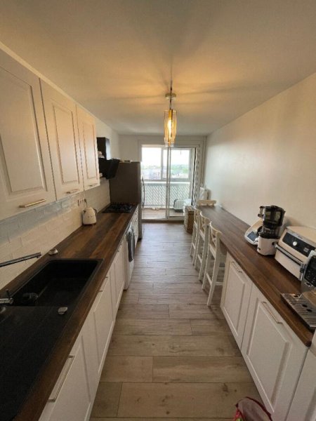 et dans un second temps à une cuisine attenante entièrement équipée avec en plus un adoucisseur d'eau de 14 m2 avec loggia ET une première chambre d' environ 11 m2 avec porte fenêtre donnant sur le balcon.
