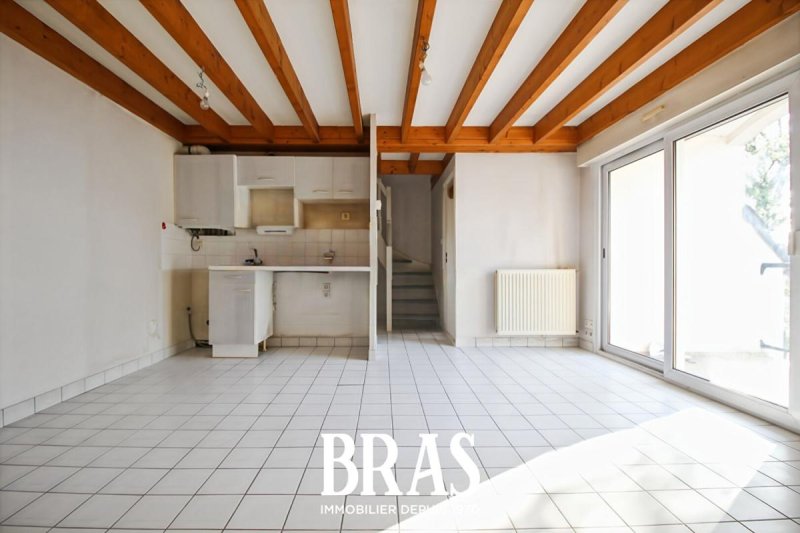 Ce duplex en dernier étage d'une petite copropriété a un grand potentiel ! Il comprend une entrée avec placard, un séjour lumineux plein sud donnant sur un balcon ouvert sur la verdure, sans aucun vis-à-vis, un coin cuisine à aménager selon son goût, une petite chambre. L'escalier privatif en bois amène à un palier desservant un placard, une grande chambre de 17m² au sol et une salle de bains.
