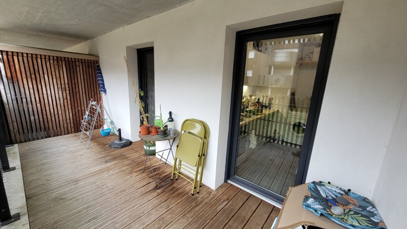 Appartement situé au calme dans une résidence sécurisée de 2016 (garantie décennale en cours jusqu'en 2026), commerces et transports en commun (bus ligne 97) accessibles à pied, quartier LE CHENE à 2 pas du Centre bourg de Vertou et des bords de Sèvre (Parc du Loiry). Situé au 1er étage AVEC ASCENSEUR, d'une superficie de 66m2, un balcon de 10,74m2 et une place de stationnement privative en sous-sol. - une entrée avec placard, d'une pièce de vie de 34m2 avec accès à la terrasse, d'une cuisine aménagée/équipée (plaque, hotte, four) ouvrant sur une terrasse de 10.74m2. - 2 chambres (12.77m2 et 9.25m2), une salle d'eau (3.67m2) (douche, meuble vasque, séche-serviettes), W.C séparés avec lave-mains. Accessibilité PMR. En complément une place de stationnement en sous-sol sécurisé et un accès au local vélos. > Côté confort : chauffage gaz (chaudière collective mixte à condensation), ouvertures PVC en double vitrage avec volets roulants manuels. Interphone. Ascenseur. > Classe énergétique : C. > Exposition pièce de vie : sud ; cuisine et balcon : ouest