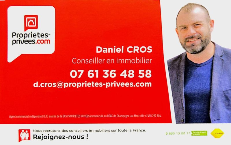 Pour visiter et vous accompagner dans votre projet, contactez Daniel CROS, au 0761364858 ou, par courriel à d.cros@proprietes-privees.com.