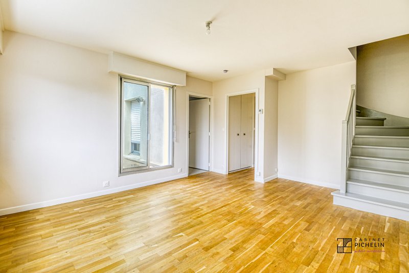Nantes - Canclaux : aux pieds du centre, de la Chézine, des transports et de toutes commodités, au 3ème et dernier étage d'une copropriété de bon standing, superbe type 2 duplex entièrement rénové offrant entrée avec placard, salon sur parquet et cuisine aménagée donnant sur terrasse sud-ouest sans vis-à-vis, grande chambre avec placard, salle d'eau, WC et espace lingerie. Une cave, un local vélos et un parking complètent ce bien de qualité. Un immense jardin de copropriété exposé sud ouest dont on peut profiter agrémente le tout.