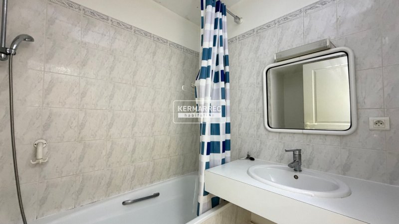 Côté nuit, une chambre avec placard ainsi qu'une salle de bains avec WC et rangements.