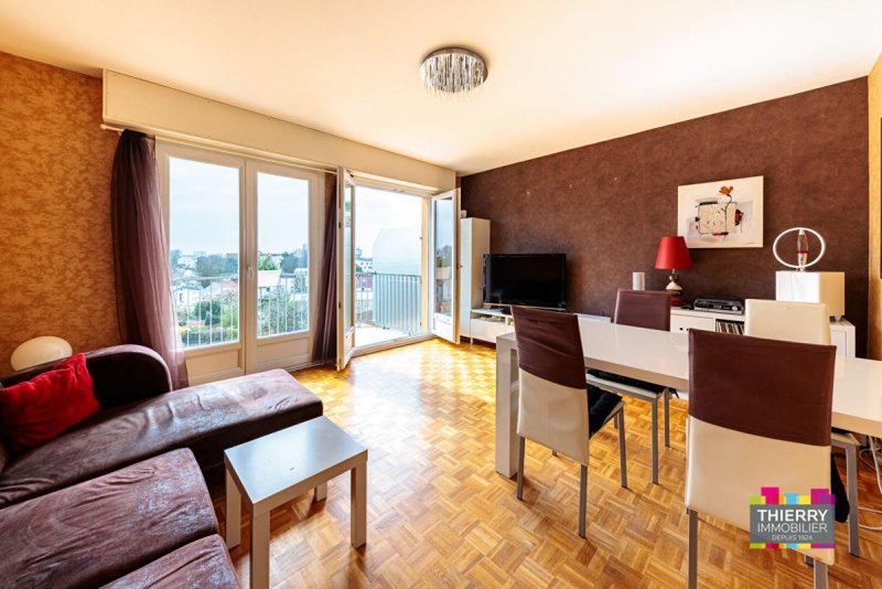 L'appartement offre une entrée avec placard et débarras desservant un salon séjour avec balcon exposé Sud, une grande cuisine aménagée et équipée séparée, deux chambres, une salle de bain et un WC séparé.