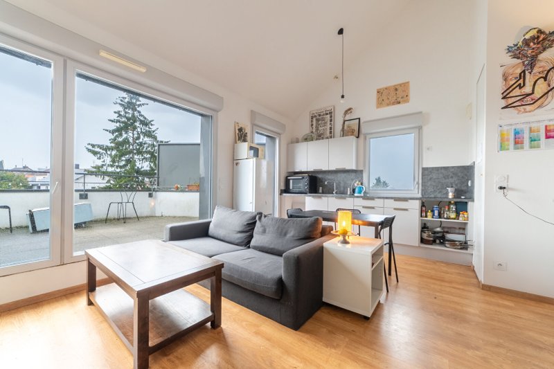 Ce bien se distingue immédiatement par ses volumes, sa pièce de vie avec cuisine ouverte bénéficie d'une hauteur sous plafond hors norme conférant un e atmosphère unique et une luminosité parfaite grâce à son ouverture sur une terrasse sans vis-à-vis parfaitement exposée sud-ouest.