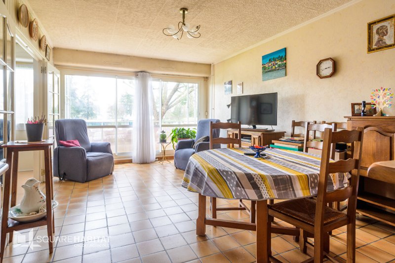 Appartement T3 comprenant une entrée, un séjour double offrant la possibilité de créer une troisième chambre et une cuisine aménagée et équipée avec une arrière-cuisine.