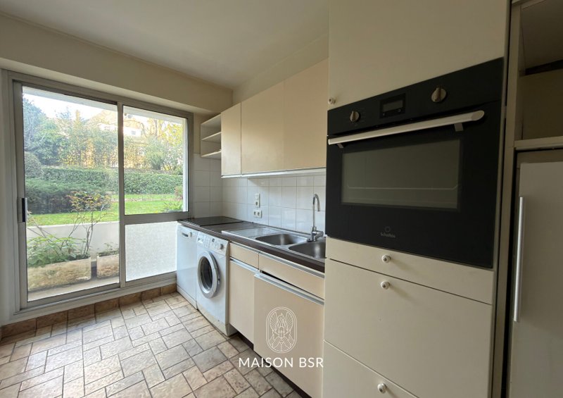 Côté jardin, l'appartement propose deux chambres, un bureau pouvant faire office de troisième chambre, ainsi qu'une cuisine.