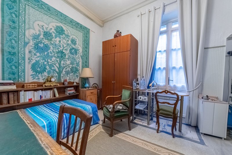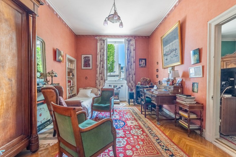 Entrée avec rangements, réception sur paquets avec cheminée, cuisine équipée donnant sur cour, 2 chambres, bureau, salle d'eau et WC séparés.