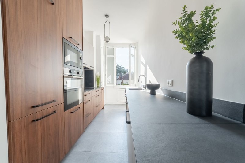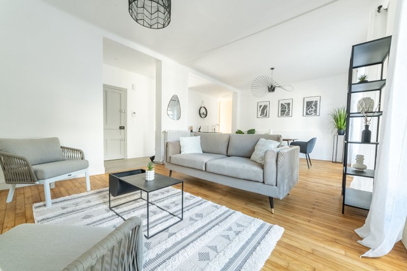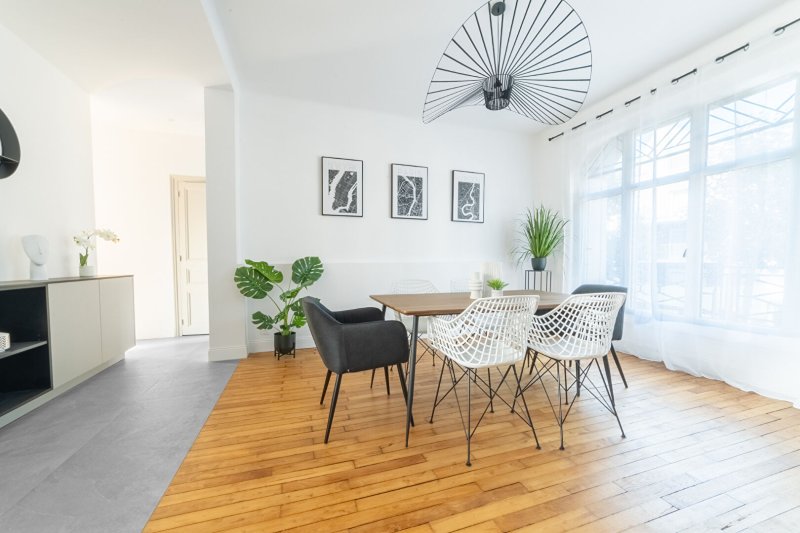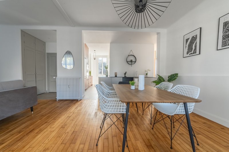 Nantes - Saint Pasquier : Idéalement situé, à deux pas de toutes les commodités du rond-point de Vannes, au sein d'un des plus beaux immeubles art déco du quartier avec ascenseur, magnifique appartement entièrement rénové aux prestations haut de gamme.