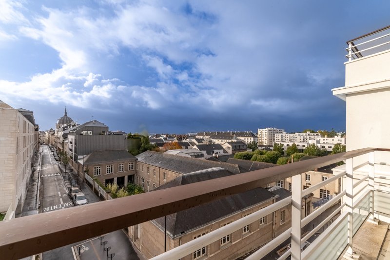Il offre une entrée avec rangements une vaste pièce de réception prolongée par une terrasse exposée Sud à la vue dégagée sur les toits de Nantes, une cuisine aménagée et équipée qu'il est possible d'ouvrir sur la réception.