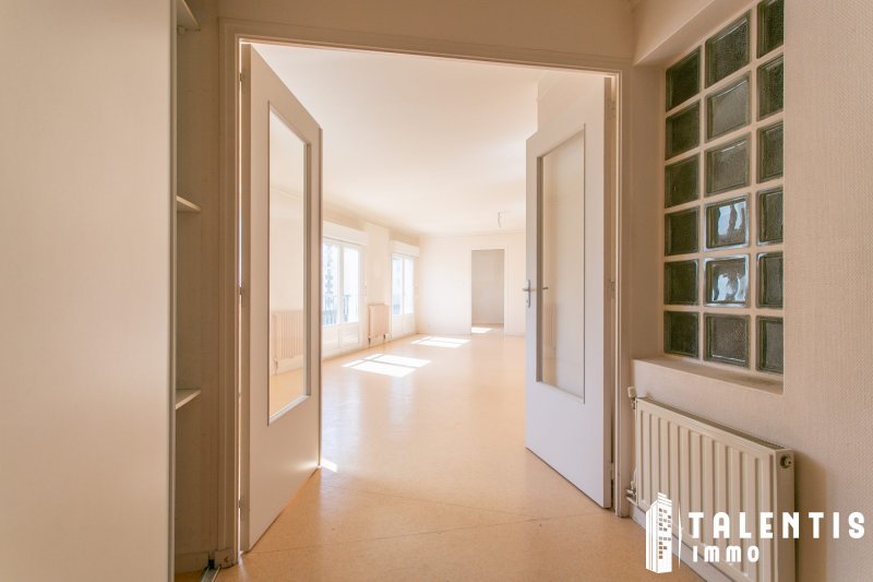 NANTES, MELLINET APPARTEMENT 5P (103m² 3ch poss. 4ch) Agencement optimisé Luminosité Emplacement recherché Au sein d'un immeuble semi-récent de bon standing, sécurisé par interphone, découvrez cet appartement à rénover offrant de belles perspectives d'aménagement. Modulable, il permet notamment la création d'une quatrième chambre ou l'ouverture de la cuisine sur le séjour afin de créer une vaste pièce de vie conviviale. Il se compose comme suit : Une entrée avec placard, Un vaste séjour exposé sud, bénéficiant de trois fenêtres et d'une belle luminosité, Une cuisine indépendante, pouvant être ouverte sur le séjour ou transformée en quatrième chambre, Trois chambres, Une salle de bains avec rangements, Un WC indépendant. Les atouts : Nombreux rangements, Local vélos, Belle luminosité grâce à l'exposition et aux ouvertures, Agencement fonctionnel et évolutif. À savoir : Chauffage et eau chaude : collectifs, Exposition : ouest (séjour), Taxe foncière : 1 365 / an, Charges : 297 / mois comprenant eau froide, eau chaude, chauffage, charges communes, ascenseurs, un stationnement et une cave, Possibilité d'acquérir un box en sus du prix de vente. Transports :Tramway : L1, Bus : C1 / 11 / 81 / E1. Un bien aux volumes généreux et au fort potentiel, idéal pour un projet familial ! Honoraires inclus de 4.17% TTC à la charge de l'acquéreur. Prix hors honoraires 288 000 . Dans une copropriété de 44 lots. Aucune procédure n'est en cours. Classe énergie D, Classe climat D Montant moyen estimé des dépenses annuelles d'énergie pour un usage standard, établi à partir des prix de l'énergie de l'année 2021 : entre 1701.00 et 2303.00 . Les informations sur les risques auxquels ce bien est exposé sont disponibles sur le site Géorisques : georisques.gouv.fr. . Talentis, l'immobilier sur mesure.