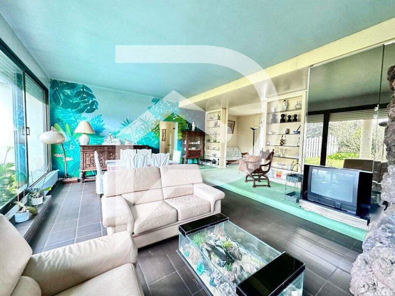 Une vaste entrée dessert un espace de vie baigné de lumière de 44 m² avec cheminée et balcon ainsi qu'une cuisine aménagée et équipée.
