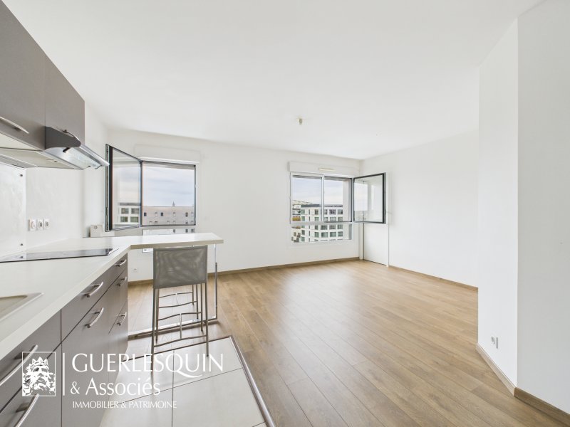 Le cabinet Guerlesquin & Associés vous propose à la vente un agréable appartement de type 2 de 42.95 m2, situé en plein coeur du quartier de la Création sur l'île de Nantes. Au 9ème et dernier étage d'une résidence moderne achevée en 2015, ce bien se trouve dans un secteur dynamique, réputé pour la qualité de son cadre de vie, ses commerces de proximité et ses excellentes connexions aux transports en commun. L'appartement se compose d'une entrée avec placard, desservant une salle d'eau avec WC, une pièce de vie avec cuisine aménagée et équipée et d'une chambre. Vous bénéficiez également d'une place de parking privée en sous-sol et de plusieurs locaux à vélos dans la résidence. Les points forts de ce bien : Résidence récente (2015), Quartier en plein essor avec commerces et transports à proximité, Présence d'un emplacement de stationnement en sous-sol A noter : Chauffage urbain, DPE C, GES A, Charges mensuelles d'environ 94EUR (comprend eau chaude et chauffage), Taxe foncière : 1045EUR, N'hésitez pas à nous contacter pour plus d'informations au 02.40.48.99.54.